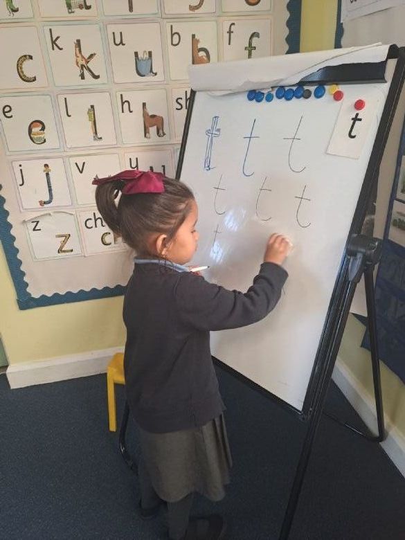 Phonics is taught daily in a group that is working on a specific set of sounds according to the ability of the child. Each session has a distinct structure and utilises Read Write Inc (RWI). The children take home a RWI book each week to re-read and develop fluency.